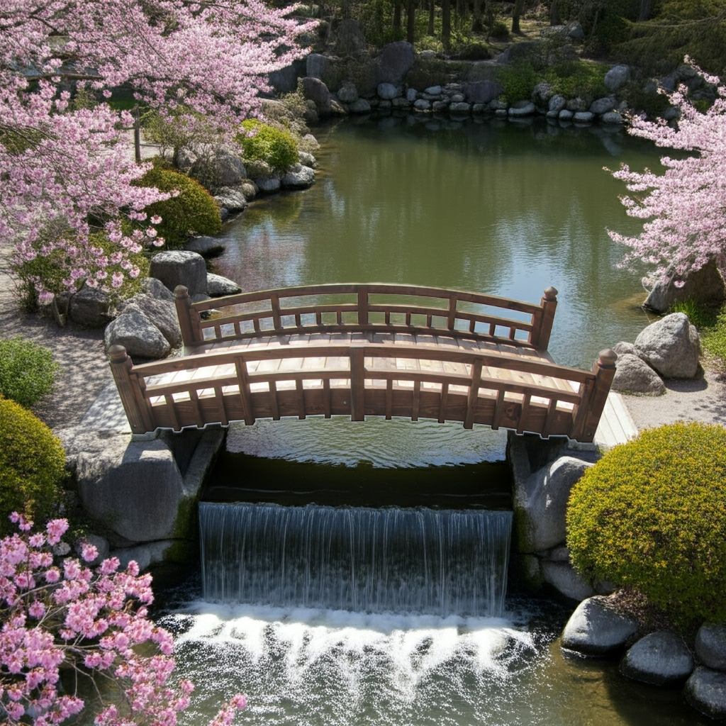 日式太鼓木花园桥,带 8 英尺顶饰。