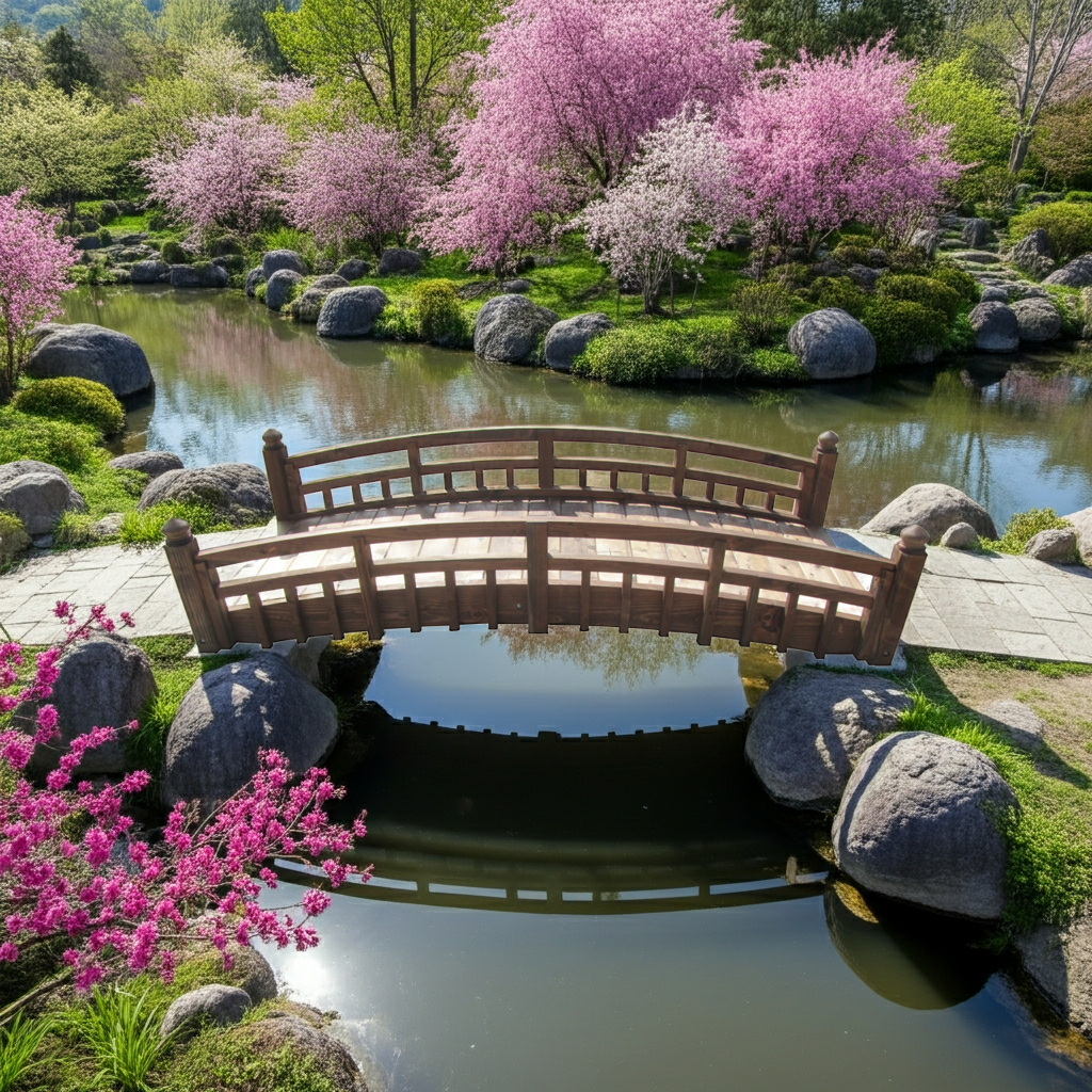 - 优雅拱形的传统日本花园桥,适用于岩石花园或水上花园。
